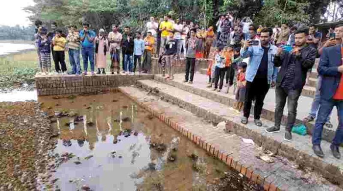 বাগেরহাটের ঐতিহাসিক খানজাহান (রহ.) এর মাজার সংলগ্ন দীঘি থেকে নিখোঁজের পাঁচ দিন পর ভাসমান অবস্থায় প্রহলাদ কুমার দাস ওরফে ভোলা ( ৪৫) নামে এক ভ্যানচালকের মরদেহ উদ্ধার করেছে পুলিশ। মঙ্গলবার (৫ ডিসেম্বর) দুপুরে দীঘির পূর্ব পাড় থেকে মরদেহটি উদ্ধার করা হয়।