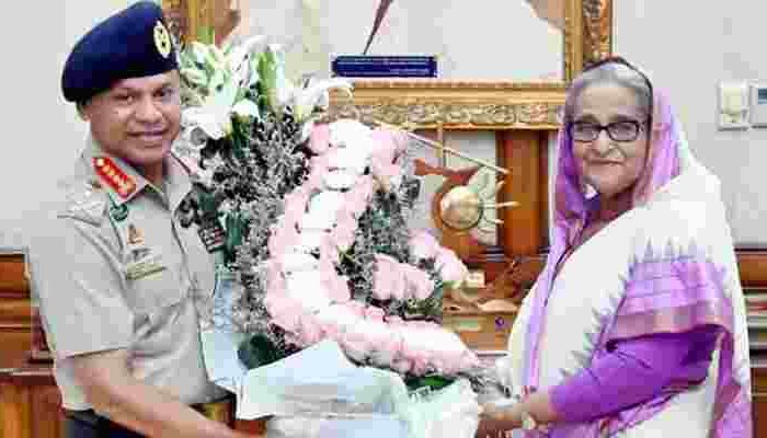 প্রধানমন্ত্রী শেখ হাসিনার সঙ্গে সৌজন্য সাক্ষাৎ করেছেন বিদায়ী সেনাবাহিনী প্রধান জেনারেল এস এম শফিউদ্দিন আহমেদ।