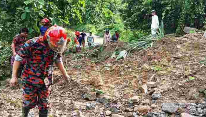 উপজেলা নির্বাহী কর্মকর্তা শিরীন আক্তার বলেন, “স্থানীয় লোকজন, সেনাবাহিনী, ফায়ার সার্ভিসের সদস্যরা সড়কে ধসে পড়া মাটি সারানোর কাজ করছেন। বড় ধরনের ধস হয়েছে ফলে সড়ক থেকে মাটি সরাতে কিছুটা সময় লাগবে।”